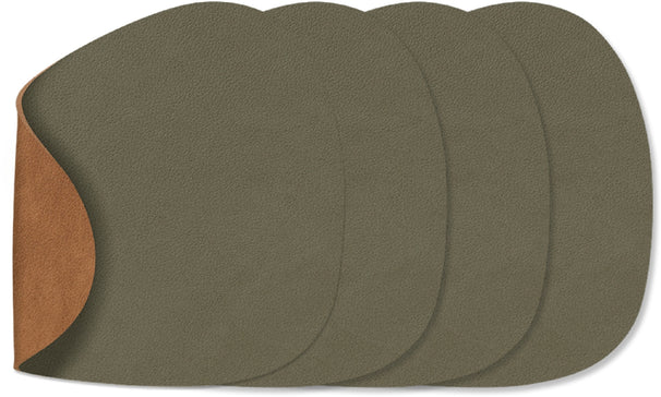 Dessous de Verre LIND DNA Nupo - Cuir - Vert armée / Nature - réversibles - 13 x 11 cm - 4 pièces
