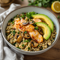 Salade de quinoa au maquereau, champignons et avocat