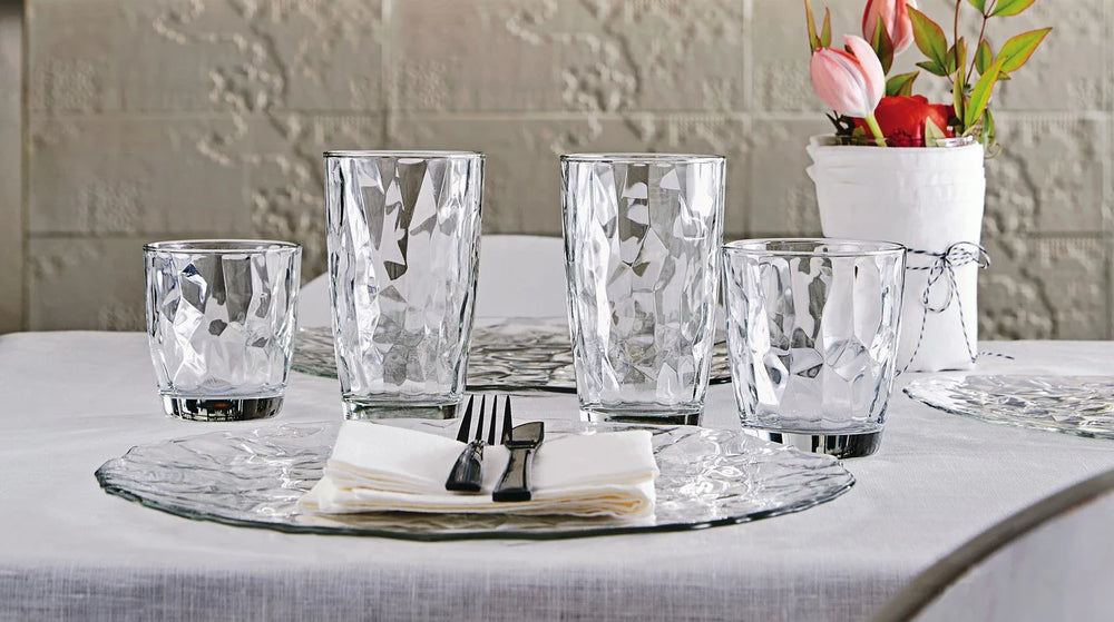 Voeg een vleugje Italiaanse elegantie toe aan je tafel met de Bormioli Rocco Diamond waterglazenset. Deze set van 18 glazen, elk met een inhoud van 300 ml, combineert stijlvol design met dagelijks gebruiksgemak. Het unieke diamantpatroon geeft elk glas een verfijnde uitstraling, terwijl het geharde glas zorgt voor duurzaamheid en weerstand tegen breuk. Perfect voor zowel alledaags gebruik als speciale gelegenheden.
