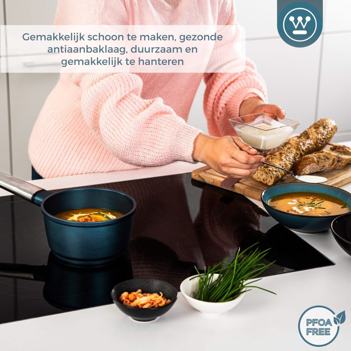 • Ensemble de casseroles Westinghouse Performance (Poêle ø 24 et 28 cm + Casserole ø 18 cm) - Bleu - Induction et toutes autres sources de chaleur