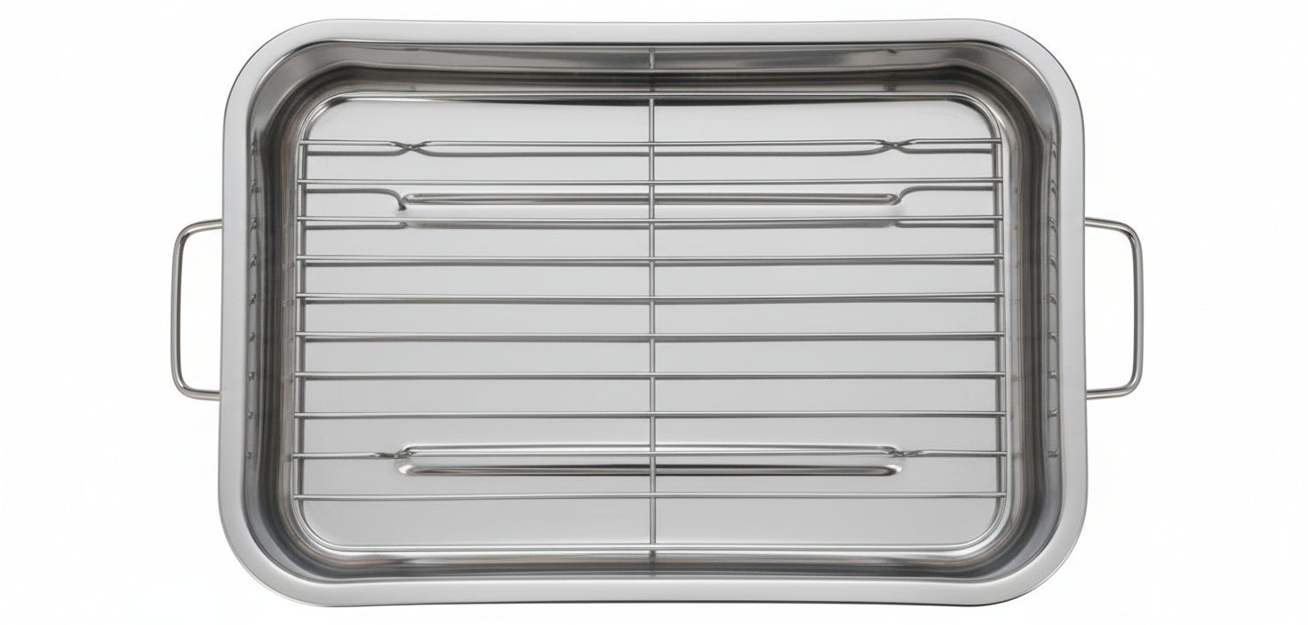 Plat à rôtir Cookinglife + grille - Acier inoxydable - 37 x 28 x 5,5 cm
