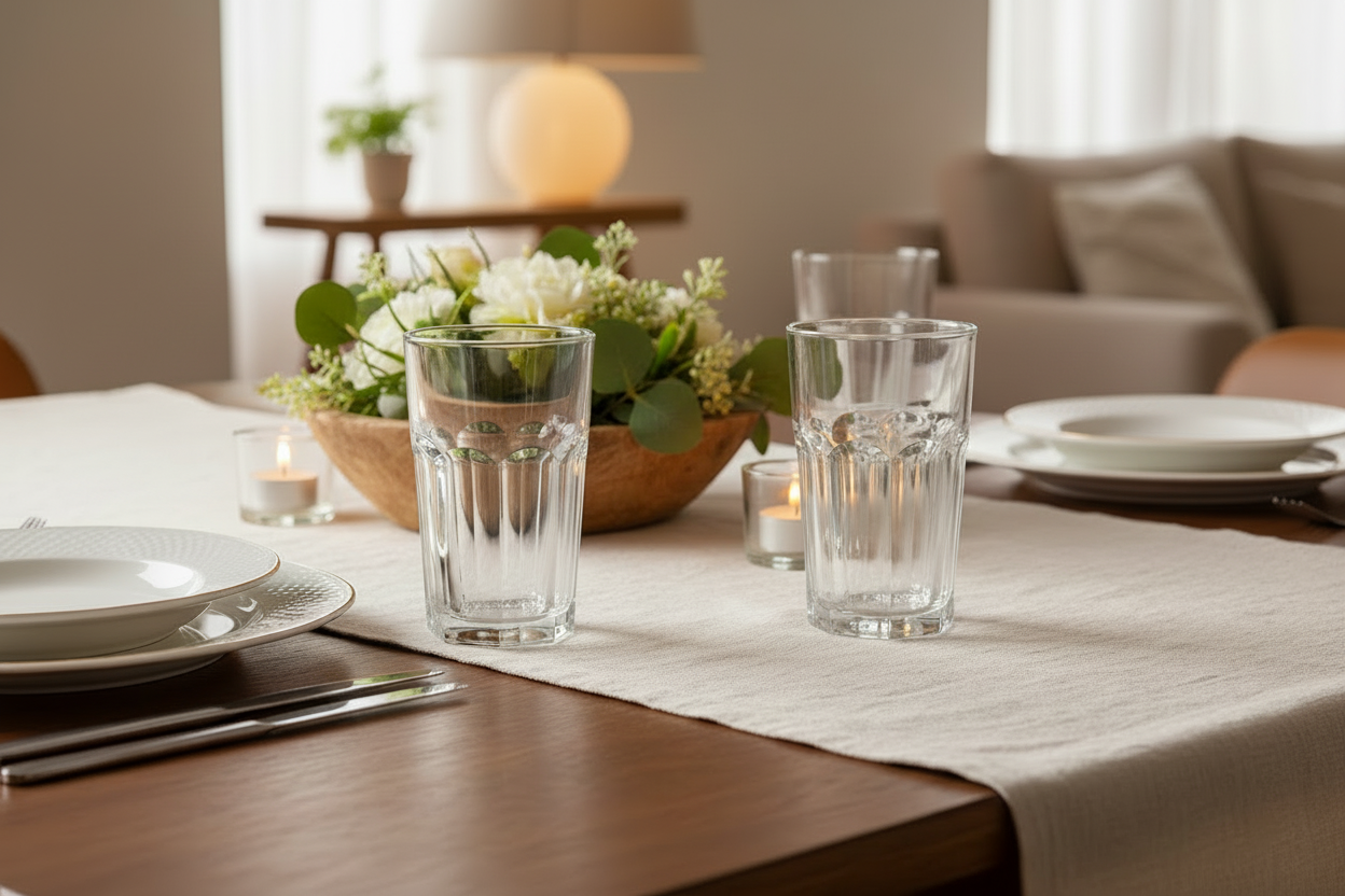 Deze set van vier stapelbare waterglazen van Cookinglife is perfect voor dagelijks gebruik aan tafel of bij gezelschapsmomenten. Met een royale inhoud van 500 ml per glas kun je ruim van water, frisdrank, ijsthee of andere dranken genieten. Door het slimme stapelbare ontwerp neem je weinig ruimte in beslag in kast of koelkast wanneer de glazen niet in gebruik zijn. De glazen hebben een tijdloze vorm en een stevige basis, wat zorgt voor stabiliteit en duurzaamheid — ideaal voor thuisgebruik of bij bijeenkomsten met vrienden en familie.
