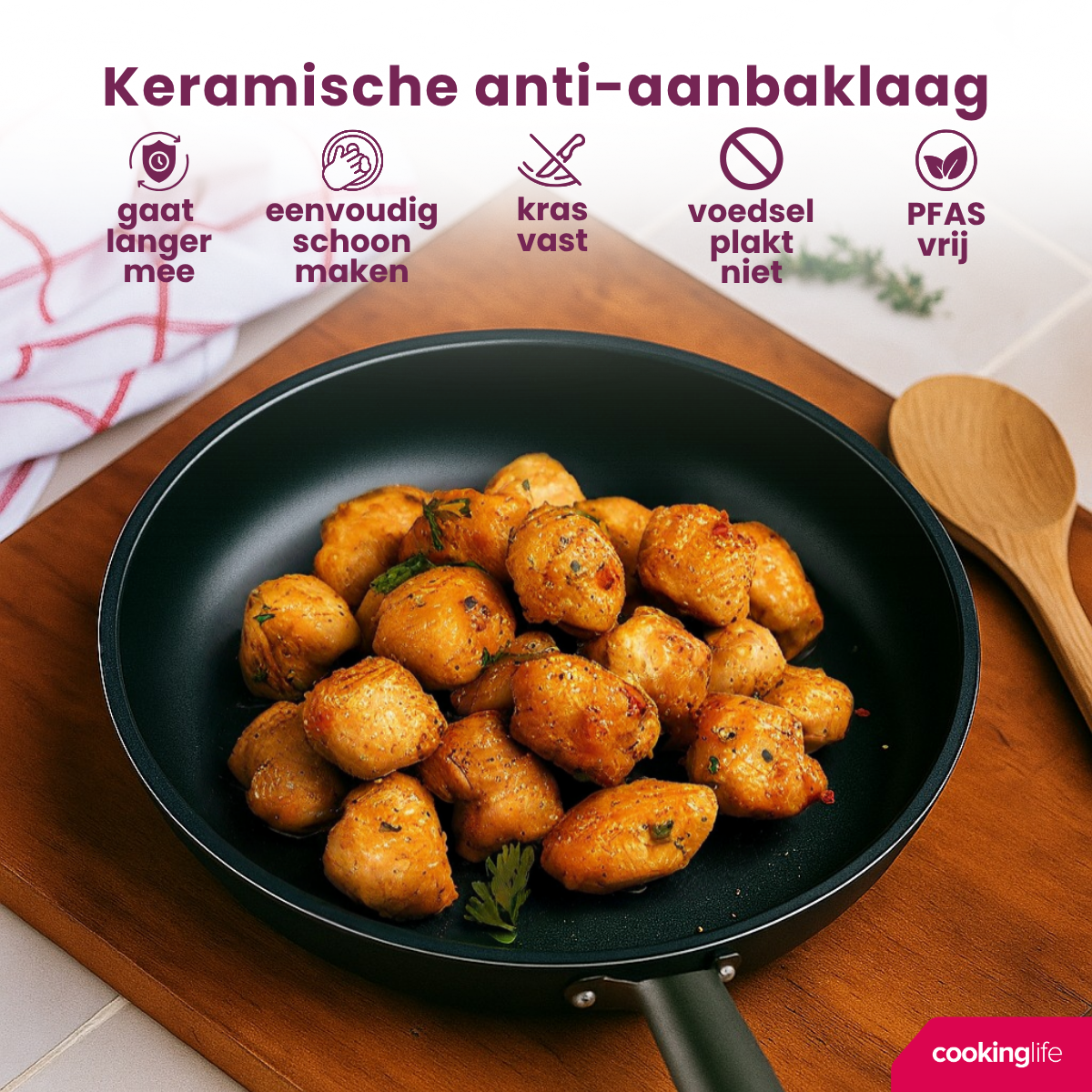 Cookinglife Koekenpannenset ProForge – Ø 24 & 28 cm – Keramische anti-aanbaklaag – PFAS-vrij