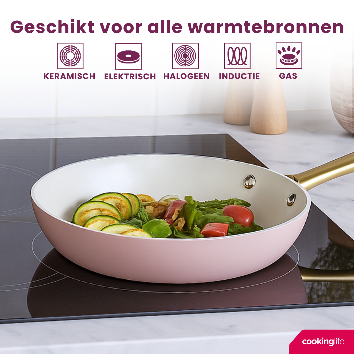 Cookinglife Koekenpannenset Style Zwart – Ø 24 & 28 cm – Keramische anti-aanbaklaag