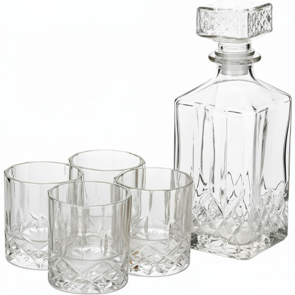 Coffret à whisky Cookinglife : carafe à whisky 900 ml avec bouchon + 4 verres à whisky