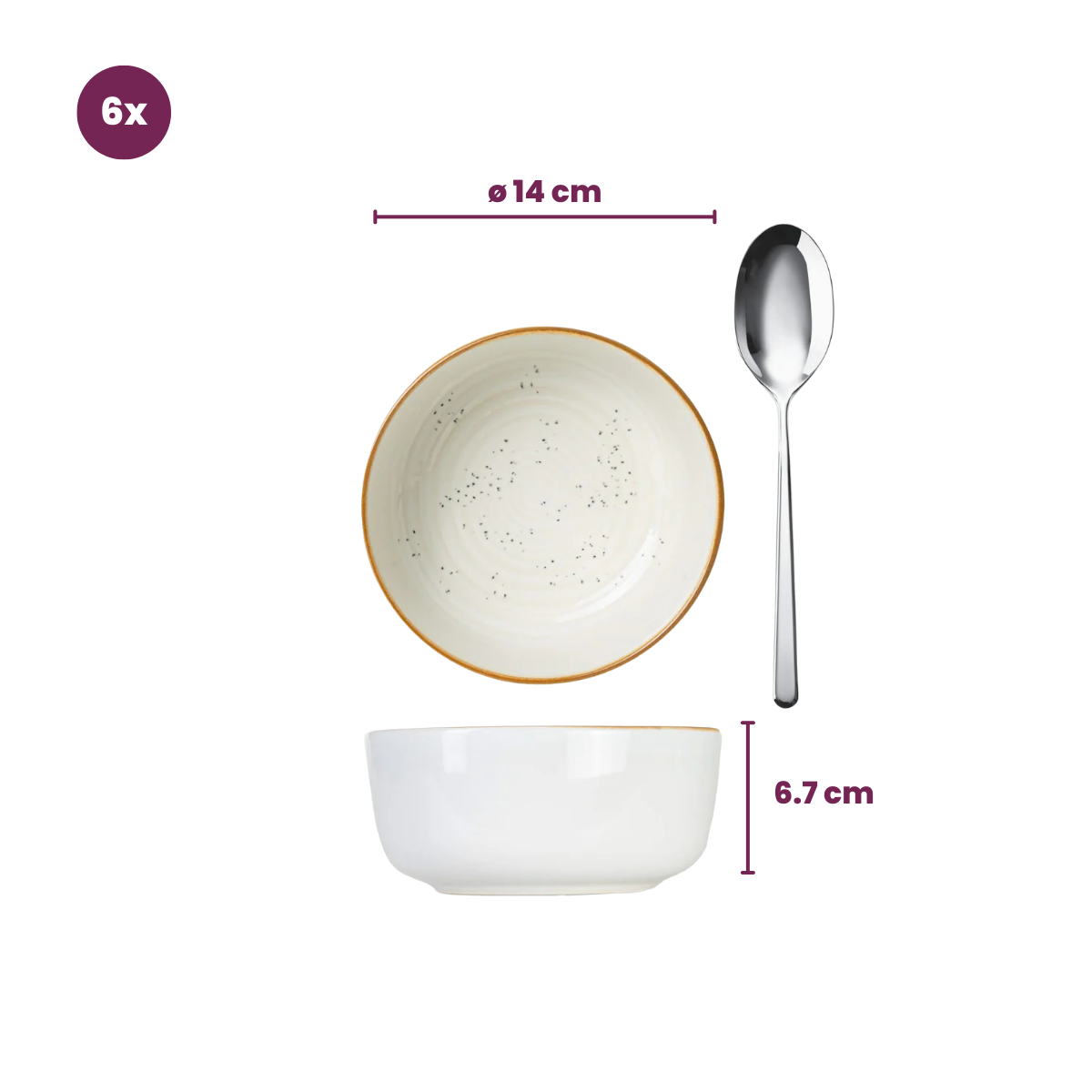 Description Service de vaisselle Cosy & Trendy Baltic Vanilla 18 pièces / 6 personnes - 6 Assiette plates, 6 assiettes à petit-déjeuner en 6 bols