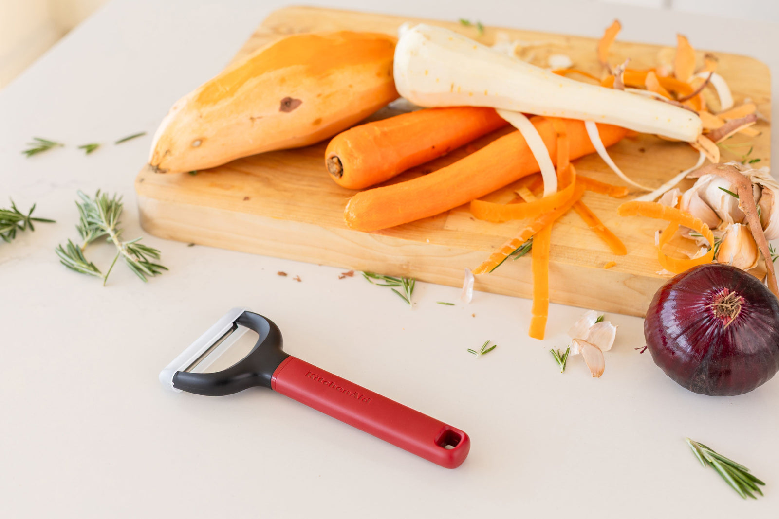 Dit is het gereedschap dat evengoed meedoet op een drukke donderdagavond als op een rustige zondagochtend. Snel een paar aardappelen schillen voor de doordeweekse pasta? Klaar. Uitgebreid groenten schillen voor een zelfgemaakt groentebouillon voor het weekend? Net zo makkelijk. De KitchenAid Y-Peeler schakelt moeiteloos mee met jouw tempo, jouw recept en jouw smaak.
