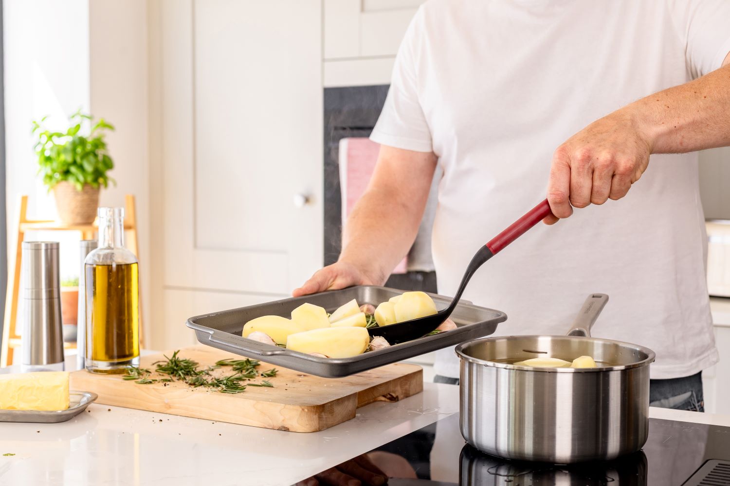 💡 De KitchenAid Tip: Gebruik de gleuven niet alleen om water af te gieten, maar ook om sauzen en marinades deels in de pan te laten terwijl je vlees of groenten omschept. Zo behoud je de smaak waar die hoort - in het eten, niet op je bord.