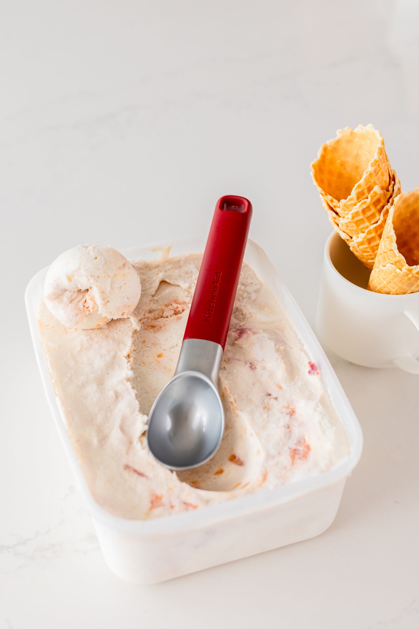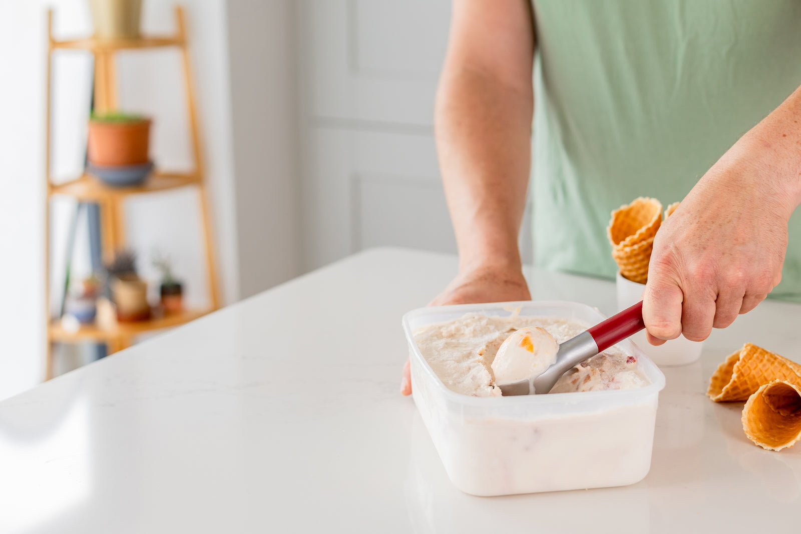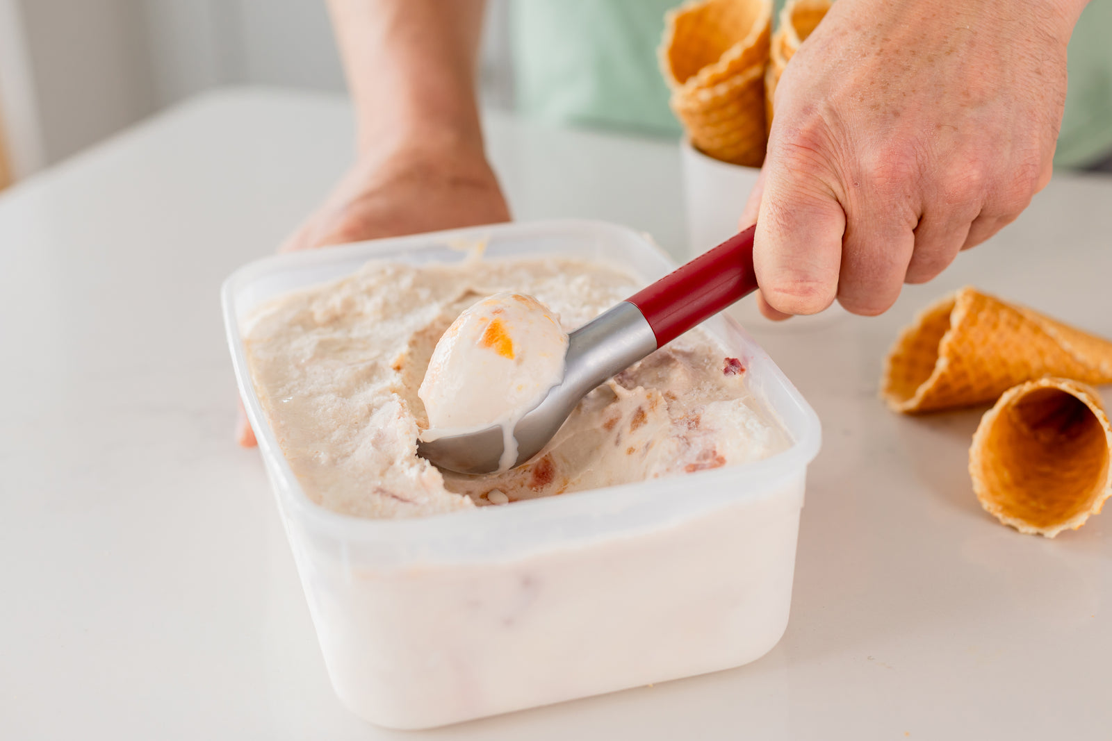 💡 Tip: Dompel de ijsschep even kort in een glas lauwwarm water voor je begint. Dit helpt de schep nog soepeler door keihard bevroren ijs te glijden en geeft je nóg perfectere bolletjes - een kleine truc met een groot effect.