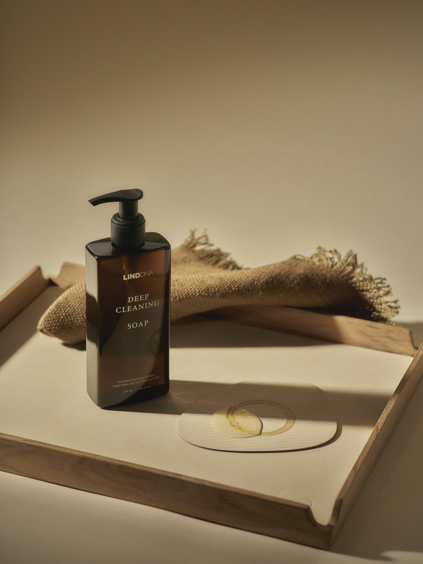 Gardez vos sets de table et sous-verres LIND DNA en parfait état grâce à Savon nettoyant en profondeur LIND DNA. Ce savon liquide est spécialement formulé pour le nettoyage en profondeur et en toute sécurité des produits fabriqués à partir de cuir recyclé.
