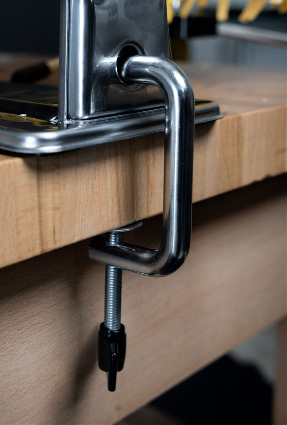 Utilisez toujours la pince de table pour fixer solidement la machine à pâtes, afin d’assurer sa stabilité et son immobilité pendant l’utilisation.