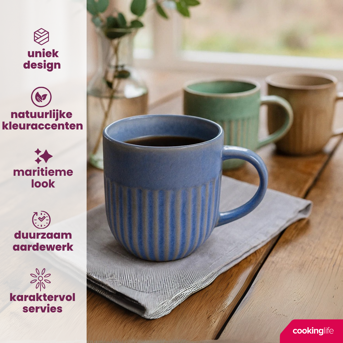 Apportez une ambiance fraîche et maritime à votre moment avec cet ensemble de 6 mugs Aqua Maris de Cookinglife. La douce couleur aqua offre une apparence sereine qui s'accorde parfaitement avec chaque tasse de café, de thé ou de boisson chaude. Fabriqués en céramique durable, ces mugs allient style et praticité – idéaux pour un plaisir quotidien avec des amis ou en famille.