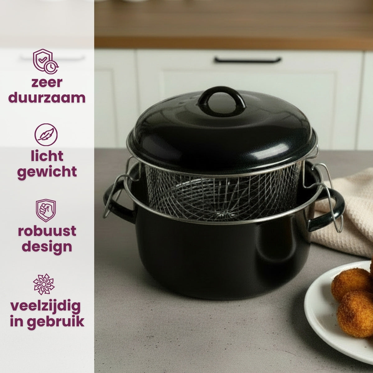 - Inclusief mand – voor eenvoudig frituren en uitlekken