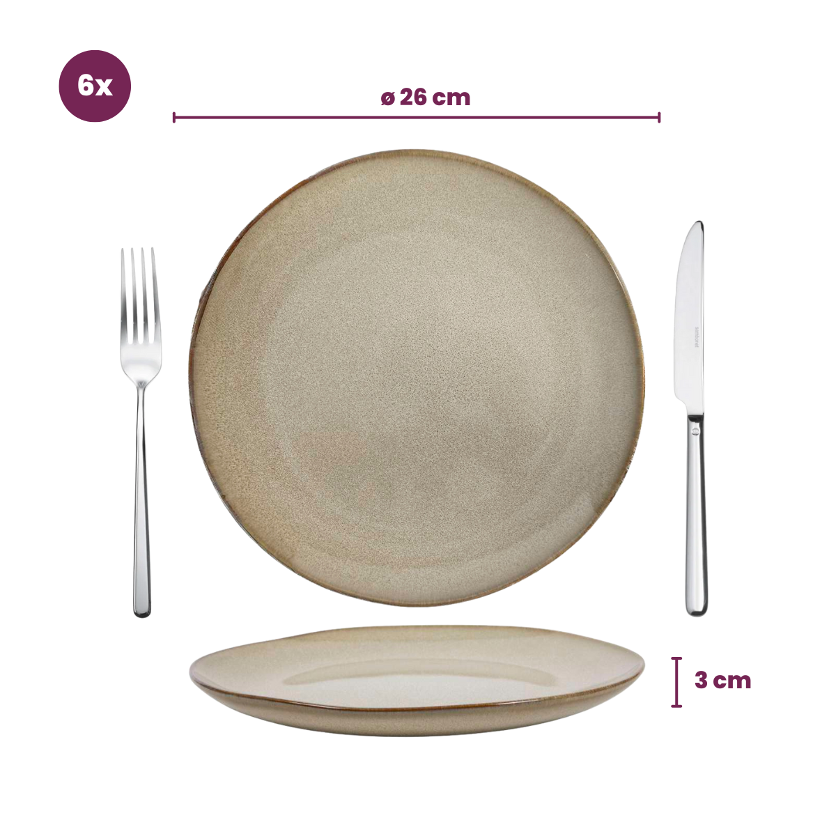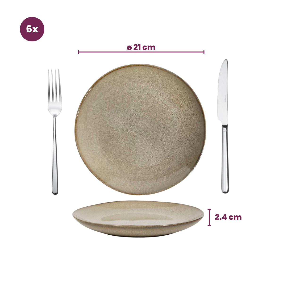 Service de vaisselle Cookinglife Sabi Beige 18 pièces / 6 personnes - 6 assiettes à dîner, 6 assiettes à petit-déjeuner et 6 bols
