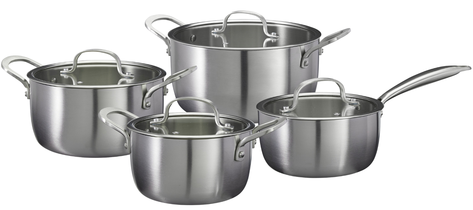Trois casseroles en inox aux diamètres 16, 20 et 24 cm, plus une russe de 17,5 cm - chaque pièce a sa raison d'être dans ta cuisine. Tu fais chauffer du lait, tu mijotes une sauce, tu prépares un pot-au-feu pour toute la famille ou tu réduis un bouillon parfumé : cette batterie Signature Steel t'accompagne à chaque étape, sans te demander d'improviser avec le mauvais outil.
