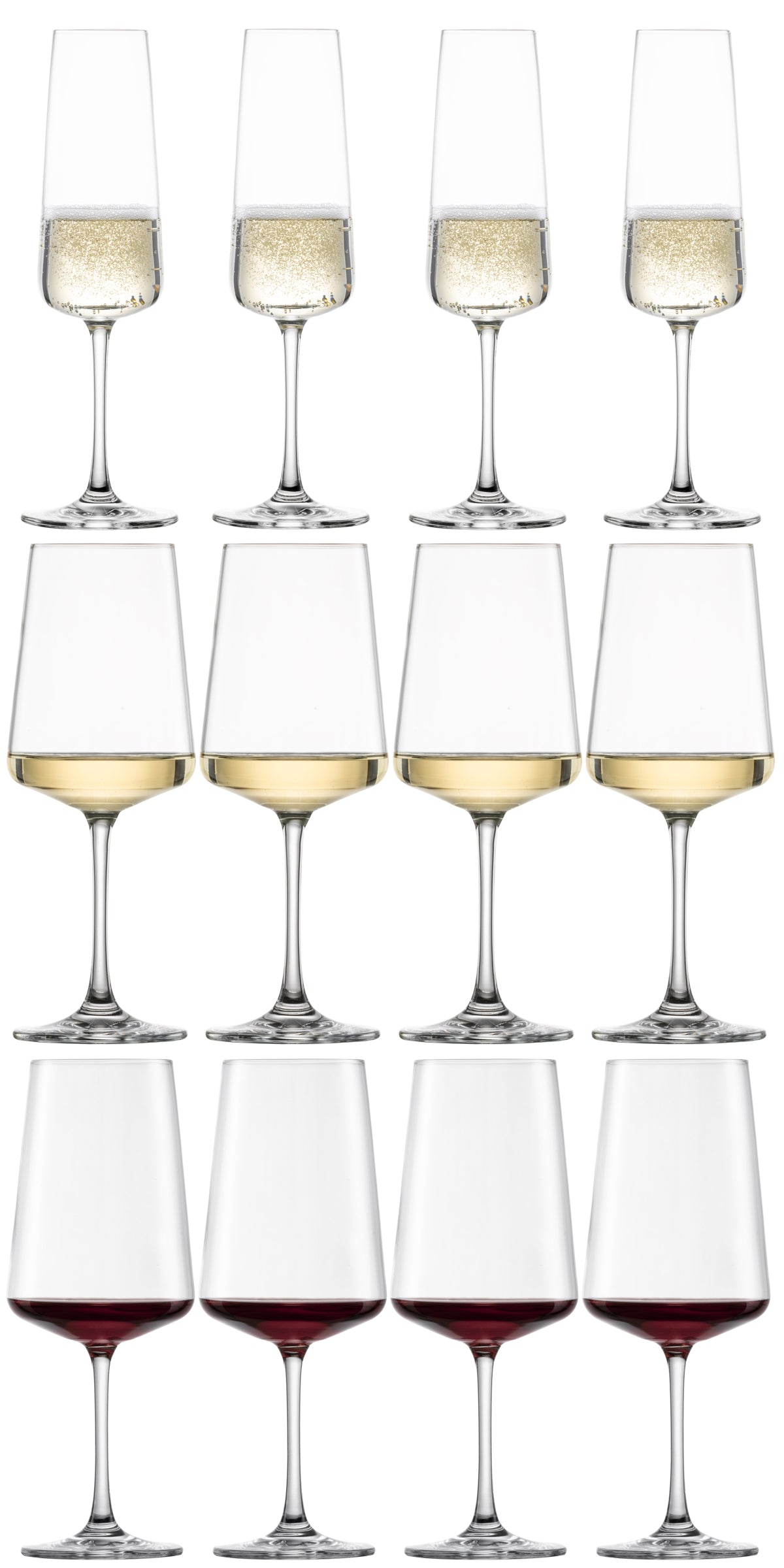 - Une set complète et prête à l'emploi - 4 verres à vin rouge, 4 verres à vin blanc, 4 flûtes à champagne : tout ce qu'il te faut pour recevoir ou se faire plaisir.