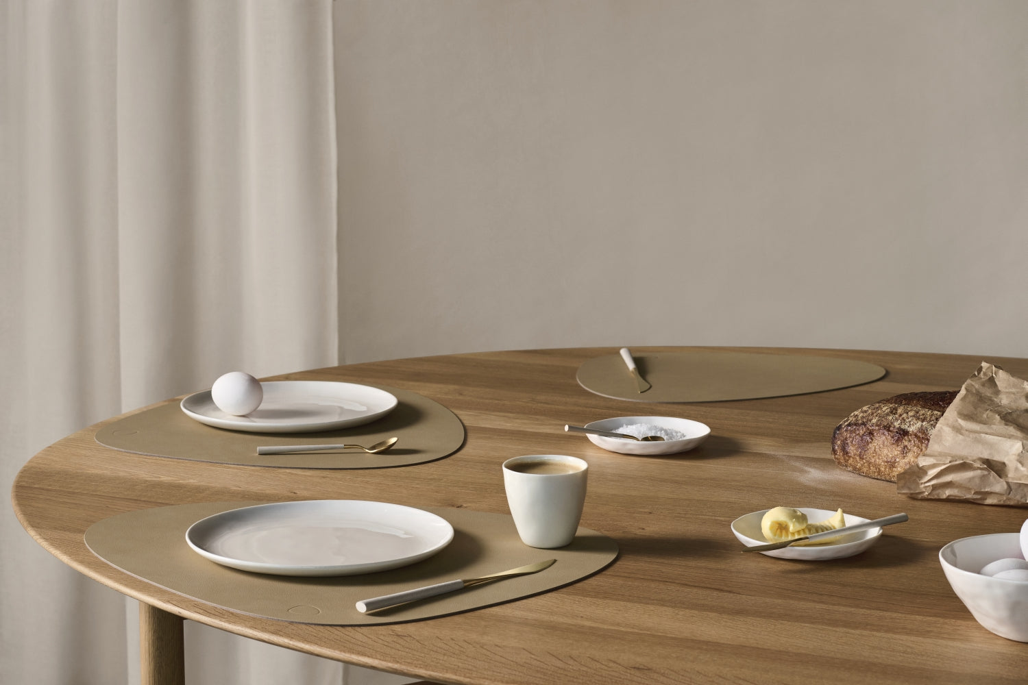 Sets de table LIND DNA Nupo – Cuir – Khaki – Courbé – 44 x 37 cm – 2 pièces