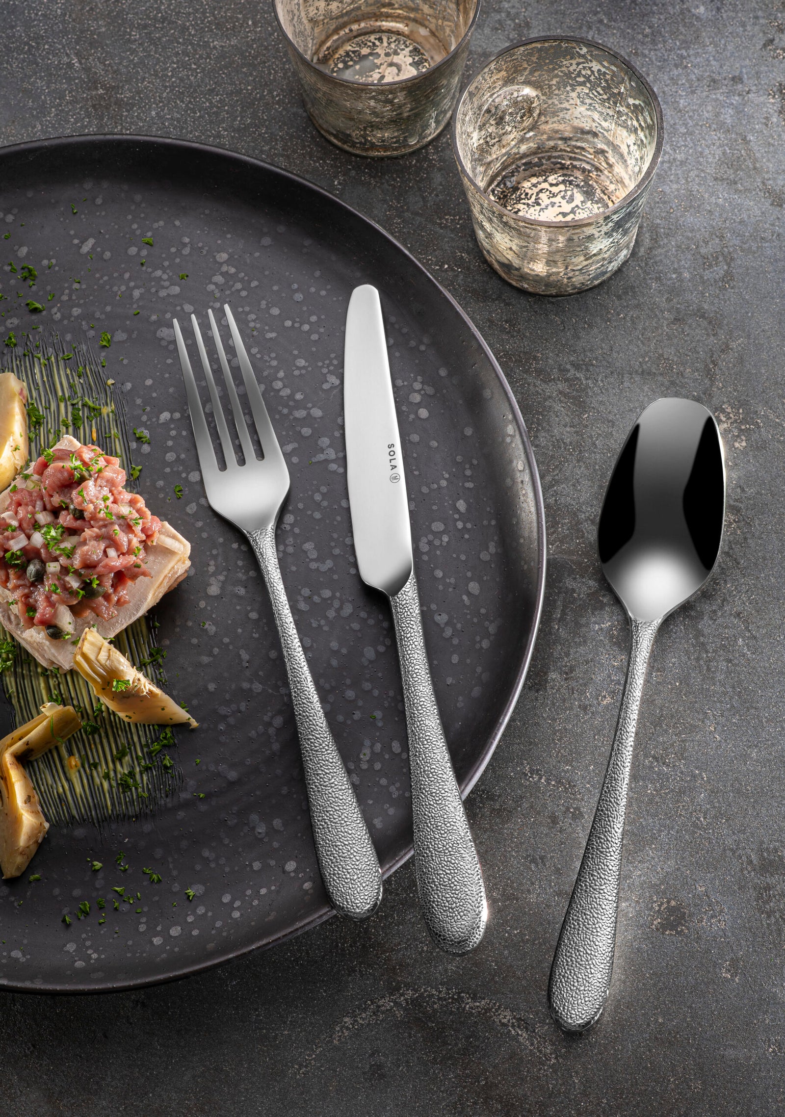 De Sola Phoenix bestekset 6-persoons 24-delig heeft een strak en eigentijds ontwerp dat past bij zowel moderne als klassieke tafelsettings. De vormgeving is rustig en functioneel, zonder overbodige details, waardoor het bestek prettig in de hand ligt en comfortabel gebruikt kan worden tijdens elke maaltijd. Deze set is geschikt voor dagelijks gebruik en vormt een solide basis voor het dekken van de tafel.